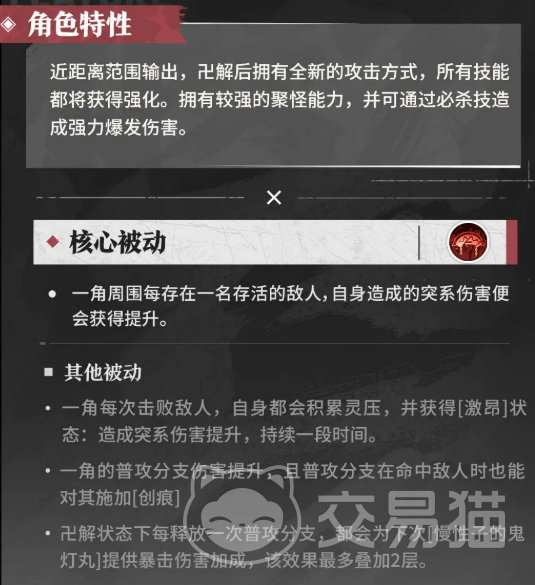 他的核心被动效果十分独特:场上存活的敌人数越多,他造成的伤害就越高。这一机制使得他在面对多个敌人时能发挥出极强的压制力。此外,每次成功击败敌人后,都会积累灵压,并有机会触发“激昂”状态,进一步提升攻击力,增强整体输出效率,带来更为流畅的连击体验。