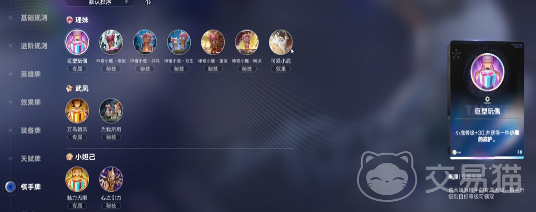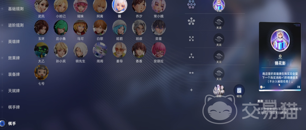 该棋手具备三项核心能力:被动技、秘技与六星专属天赋。战斗初始阶段,其自带3点能量优势,并在每次拍卖环节结束后额外获取3能量,形成前期资源积累优势。其秘技需消耗45能量,发动后可抽取一张名为“为我所用”的特殊卡牌,随机复制本局对战中其他棋手的一张秘技,实现技能借用,在战术搭配上极具灵活性。当升至6星时,将从三位不同棋手的秘技卡中任选其一继承,进一步强化策略多样性。