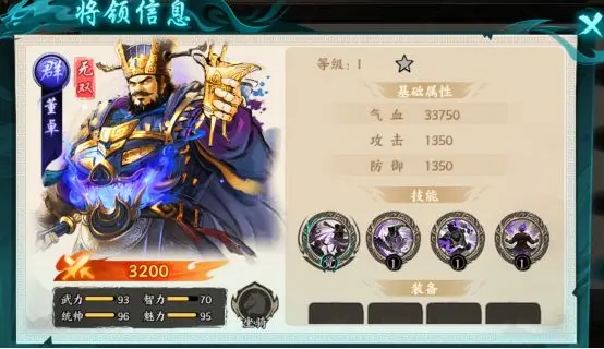 董卓是一名以生存能力见长的枪兵型前排武将。他的怒气技能针对敌方攻击力最高的单位发起攻击,并将造成的伤害值50%转化为自身护盾。觉醒后,技能可对周围2格范围造成溅射伤害,并降低主目标150点怒气值。若敌方带有“麻痹”状态,还可获得持续8秒的额外护盾。虽然输出能力一般,但出色的抗伤与控怒机制使其成为队伍中可靠的坦位担当。