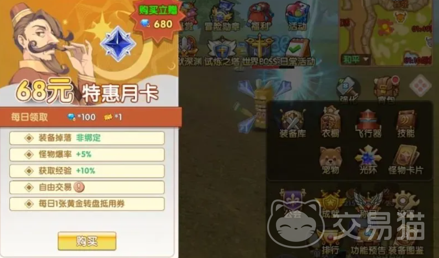 游戏前期的交易系统设计较为完善,包含拍卖行与玩家直连交易两种模式。若计划进行适度充值,推荐优先考虑68元的月卡服务。开通后可立即解锁装备分解与自由交易功能,同时还能享受每日钻石领取、提升装备掉落率等多项长期收益。这一选项因其高性价比,成为多数搬砖型玩家首选的投入方式。