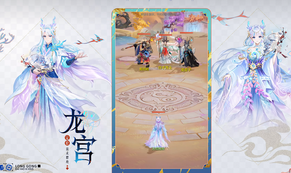 龙宫门派的设计融入了大量海洋主题元素,角色造型和技能特效均体现出水系特征。作为游戏中主打法术输出的门派之一,其所有成员均可施展范围型法术攻击。该门派以水属性群体伤害为核心战斗方式,擅长高效清理多个敌人。尽管也具备单体打击能力,但其技能通常覆盖较广区域,既能精准锁定单一目标,也能同时压制小规模敌群。