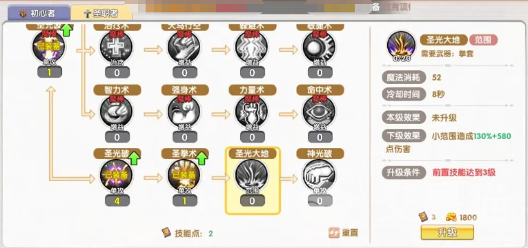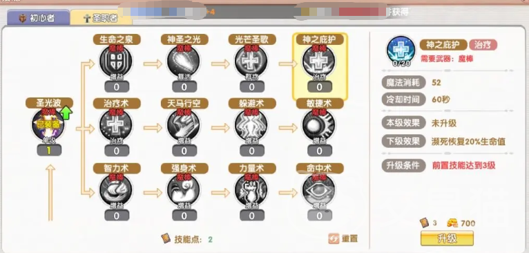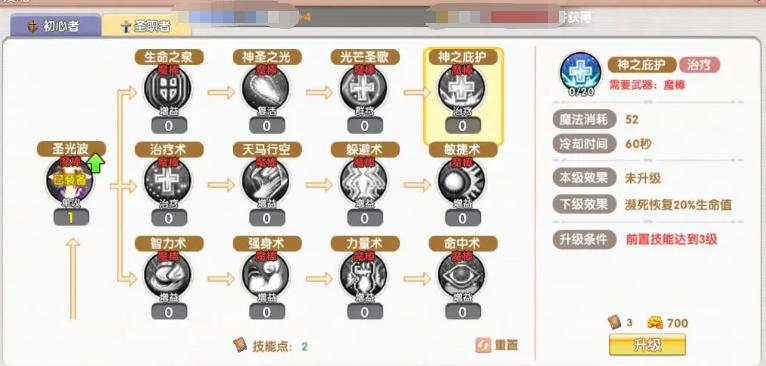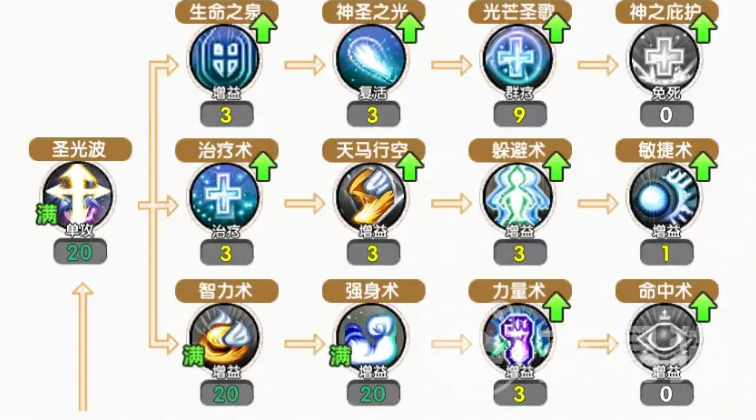 若专注魔棒流派,治疗能力为核心追求目标。治疗术应优先升级,单体治疗拥有184%的基础加成并附加1145点固定治疗量,是保障队友存活的关键手段。同时,光芒圣歌作为群疗技能同样不可忽视,可持续维持团队血线稳定。此外,力量术可为全队提供39%的力量增益,建议在点满前两个技能后,将其升至前两者一半左右的等级即可实现良好辅助效果。