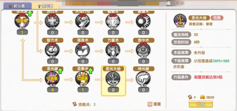 若走拳套路线,则需强化近战输出链路。圣光闪现可用于快速接近敌人,起手衔接圣拳术尝试触发20%眩晕效果,成功命中后立即释放神光破,后者除115%基础伤害外,还附加236点电属性伤害,显著提升瞬间爆发力。若未能命中控制,也可改用圣光大地进行扇形范围打击,压低敌方整体血线,创造收割机会。值得注意的是,当目标生命值高于30%时,神光破还会激活额外伤害机制,进一步增强斩杀能力。合理搭配这些技能,才能充分发挥拳套形态的战斗潜力。