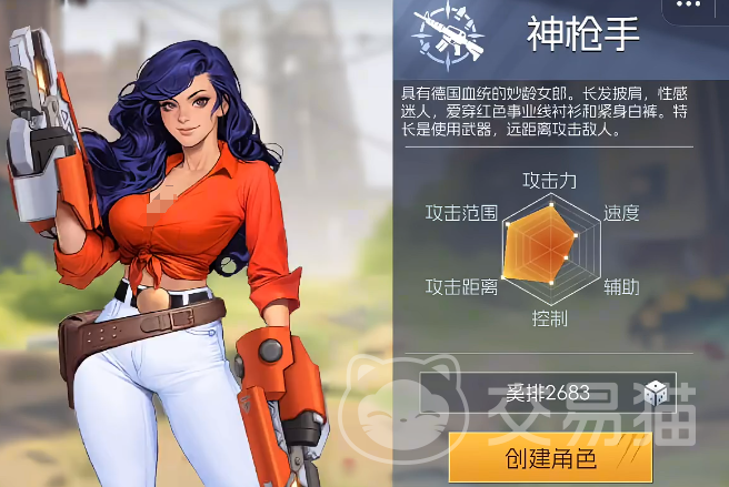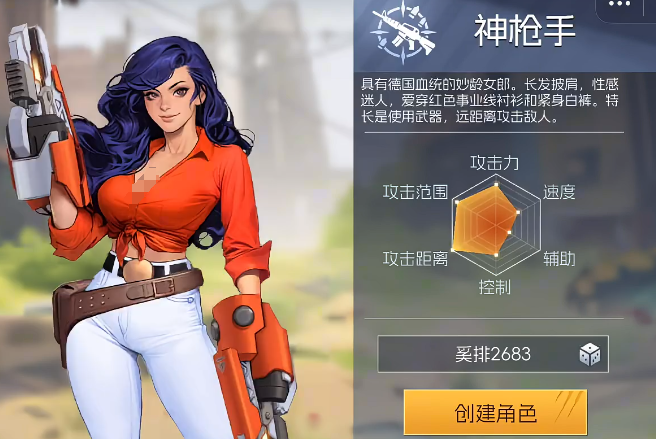 神枪手,也就是游戏中被称为汉娜的女主角,凭借其标志性的紫色波浪长发和醒目的红色上衣,在视觉上极具辨识度。她不仅外形出众,战斗风格也独树一帜。不同于传统格斗角色依赖体术输出,汉娜能够使用远程枪械进行打击,能够在安全距离对敌人造成高额伤害。同时,她的移动速度是所有角色中最快的,操作流畅顺滑,擅长通过快速位移与对手周旋,既能主动进攻,也能灵活规避敌方技能。