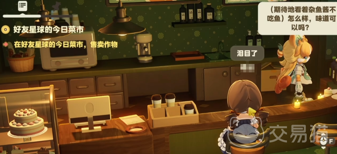 想要与老板娘互动,可以先接取“今日菜市”相关任务,前往她的店铺采购指定物品,再转售给其他玩家以完成流程并获取奖励。作为咖啡店的经营者,她支持自由交易,玩家可随时进入店内与她对话、购买所需商品。此外,她在完成交易后还会主动询问反馈,比如“这东西好吃吗?”让整个交流过程更具沉浸感。