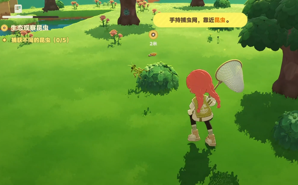 开始捕捉前,需要先切换至专用的捕虫工具。游戏中提供两种主要设备:捕捉网与诱捕盒。针对蝴蝶这类空中飞行的昆虫,推荐使用捕捉网进行操作。装备后角色移动速度会有所下降,这是正常现象,因为快速动作容易惊扰到敏感的昆虫。为了提高成功率,建议避免跳跃或急转弯等剧烈行为,保持平稳缓慢的接近方式。
