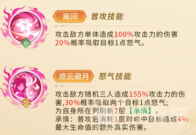 貂蝉是目前版本中备受关注的功能型武将,兼具控制与持续伤害能力。她的普通攻击可对敌人造成100%攻击力的伤害,并有20%概率偷取目标1点怒气,有效延缓敌方大招释放节奏。技能“倾城一舞”可随机攻击三个敌方单位,造成155%攻击力的伤害,同时有30%几率吸取怒气,并叠加2层“承情”效果。每次普攻将消耗一层“承情”,并对目标造成相当于其最大生命值4%的真实伤害,对于高血量单位具有显著压制作用。