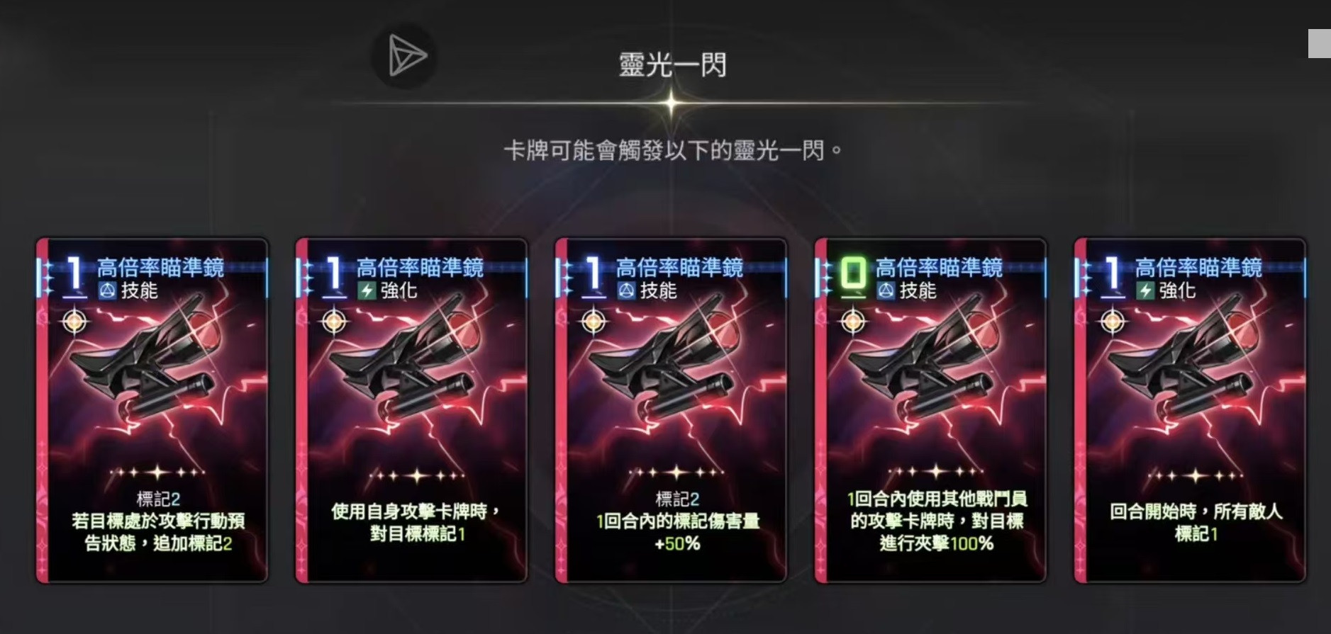 从基础技能来看,席琳娜拥有一张费用仅为1点的交战射击卡牌,可稳定打出100%伤害,配合另一张1费紧急遮蔽技能,能够为自己或队友提供等额护盾,有效提升生存能力。在专属技能方面,捕捉目标可在造成100%伤害的同时施加一层标记;高倍瞄准镜则能叠加两层标记,适应多种战斗场景。当敌人被标记后,后续攻击将触发额外伤害效果。此外,无人机出击可对全体敌人造成范围伤害,并附加热情弱点状态,显著增强队伍中热情属性角色的输出效率。