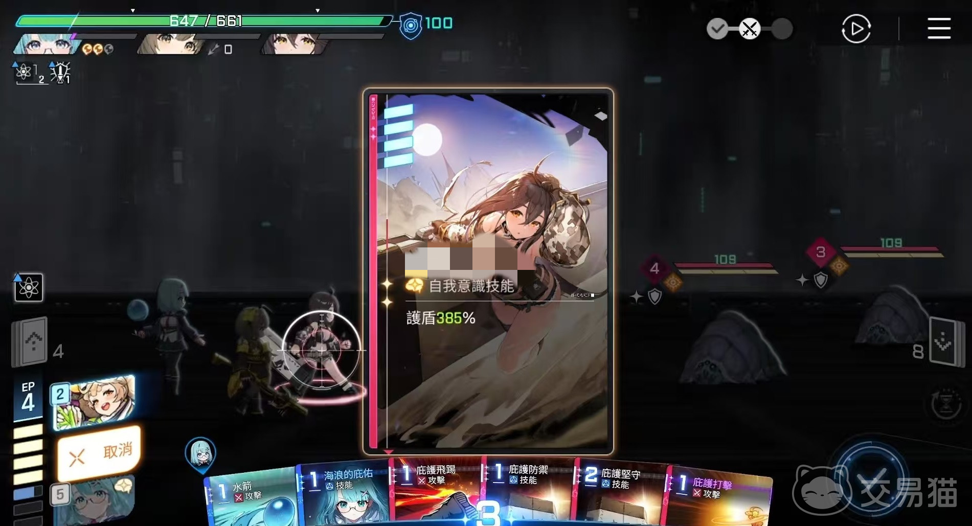 她的专属特殊卡共有四张:“玛丽贝尔的庇护”、“狼之巢穴”、“啊原来如此”和“庇护打击”。“玛丽贝尔的庇护”是一张兼具输出与自保功能的一费攻击卡,可在造成伤害的同时为自己附加护盾;“狼之巢穴”为强化类技能,每回合开始自动获得两层反击效果;“啊原来如此”可在提供护盾与反击状态的同时,削弱全体敌方单位;“庇护打击”的伤害数值取决于当前持有的护盾总量,属于稳定输出手段。值得注意的是,反击状态具有联动机制:当角色受到攻击时,若处于反击状态,则可根据防御值反伤攻击者;若成功用护盾完全抵消伤害,反伤数值还将额外提高,但每次触发后会消耗一层反击。
