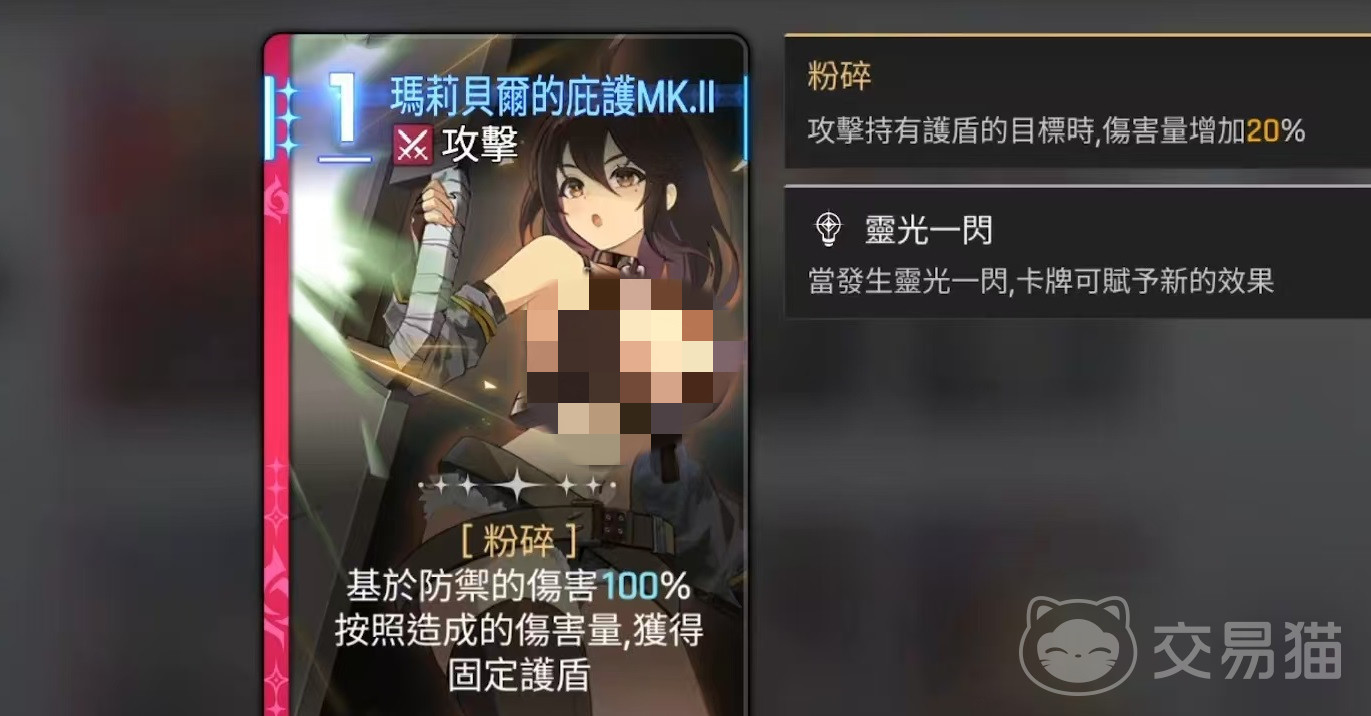 初始卡组方面,玛丽贝尔拥有四张基础卡牌:庇护飞踢、庇护防御、庇护坚守以及意志的冲刺。其中,“庇护飞踢”是一费攻击类卡牌,伤害随当前防御力提升而增加;“庇护防御”作为一费技能卡,可直接生成护盾;“庇护坚守”消耗两费,提供的护盾量高于普通防御技;“意志的冲刺”则是一费攻击卡,除造成基于防御的伤害外,还能叠加一层反击状态。从卡组构成来看,玛丽贝尔偏向于防守反击路线,起手即具备多重护盾构建手段,区别于常规的一攻一防配置。