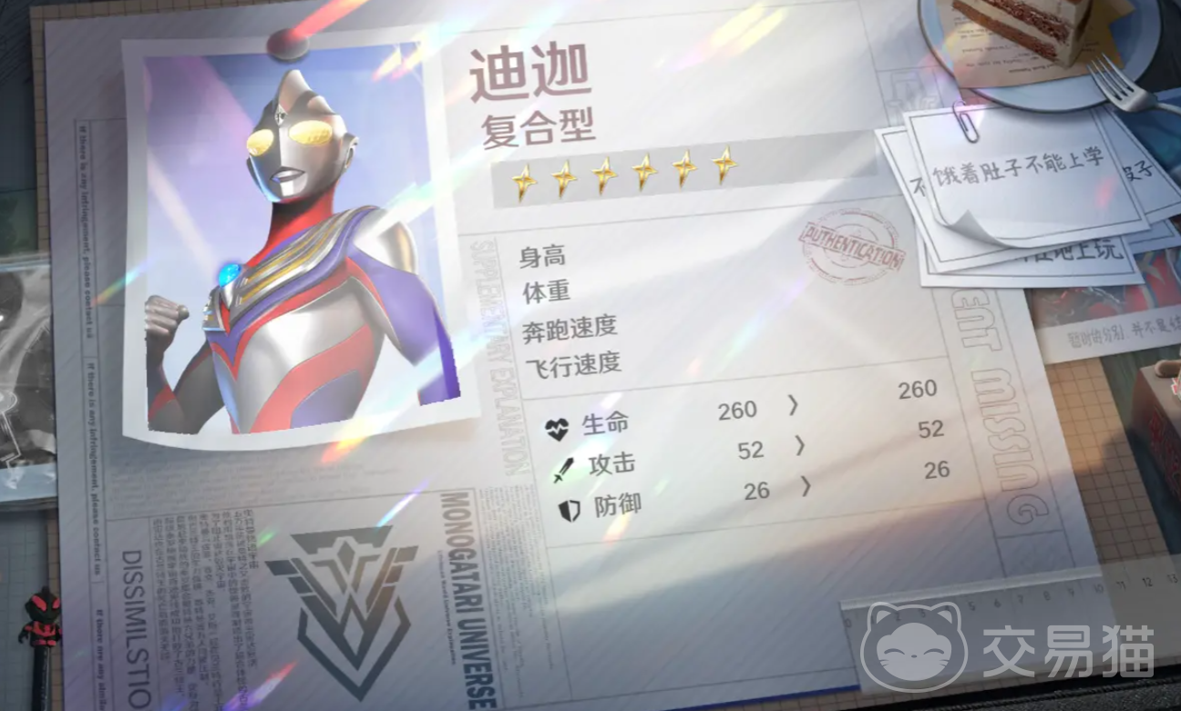 首先是迪迦的复合型形态,该形态以高攻击力著称,职业定位为输出型角色,能够对敌方造成可观的伤害。其技能机制与自身生命值挂钩,在保证输出的同时也具备一定的生存能力。在团队作战中,他兼具攻击与防御优势,核心功能集中在控制领域,可为敌人施加易伤状态,削弱其抗性。配合升星效果,在敌方被控制时还能显著提升自身的生存能力和伤害输出。当与戴拿、盖亚形成联动时,更能触发强力组合技,使全队获得行动提前的优势,因此非常适合组建控制流阵容。