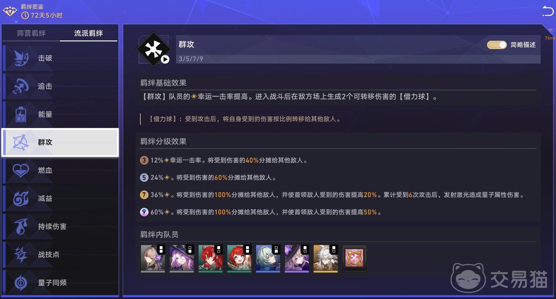 群攻羁绊以高范围伤害著称,成型速度快且转型灵活。前期获得小黑塔、翡翠与缇宝即可初步组建基础阵容,若后续成功获取大黑塔或景元等关键角色,达成7群攻配置后整体输出将大幅提升。此外,该羁绊在周常任务中表现优异,是快速完成周期性目标的优选方案之一。