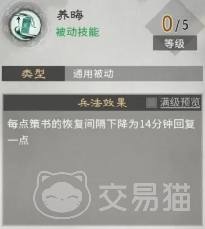 进入游戏后期,若追求更高的技能循环效率,推荐配置名为养晦的兵法。该技能可提升自然恢复速度,使主动兵法的可用频率明显增加,特别适合高强度对战环境下的连续作战需求。而对于偏好轻松体验的休闲玩家,则可考虑选用木影作为替代方案。