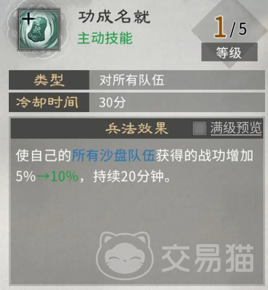 另一个值得投资的兵法是“功成名就”,它能够显著加快战功获取速度。在频繁参与战斗的前中期阶段,快速累积战功有助于提前进入排行榜竞争阶段,同时也能换取更多发展资源。对于希望兼顾PVP排名与日常资源收益的玩家来说,此兵法提供了稳定的成长支持,尤其适合有志于冲击双榜的玩家配置使用。