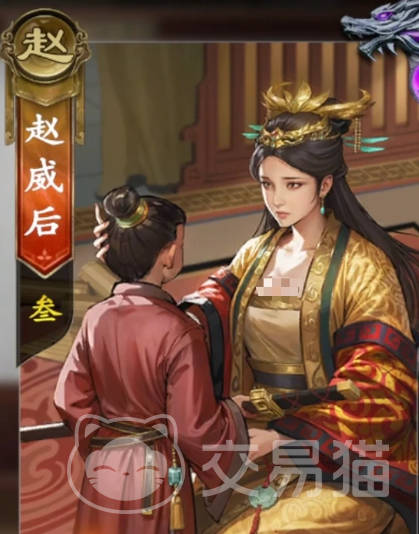 第三位是拥有强力保护机制的赵威后。她的一技能可在即将因“杀”受到伤害前发动,指定一名队友从特定区域拿取一张卡牌,并在队友返还一张其他卡牌后,自身恢复1点体力。这一设定让她既能支援队友,又能维持自身血量,在持久对局中具备良好的续航能力。二技能则带有一定博弈性质:可让某位队友跳过阶段流程,但在其失去最后一张手牌或手牌被清空时,需进行一次卜卦判定,若结果不利则会导致该队友损失1点体力。因此该技能需根据局势谨慎使用,适合在关键时刻扭转战局。