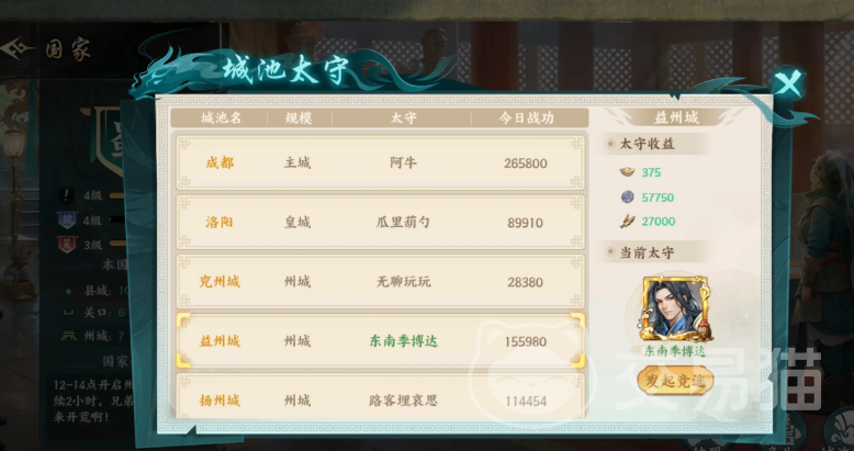 值得一提的是,官职系统会对战功获取提供额外加成。系统依据全天战功排名动态分配职位,拥有更高官职者可享受更多特权。其中,太守竞选于每日12:00至14:00开放,若当日战功表现突出,便有机会参与角逐,获胜后将获得包含武功秘籍在内的丰厚奖励。因此,在日常游戏中适当加强战功刷取频率,有助于提升竞选成功率。