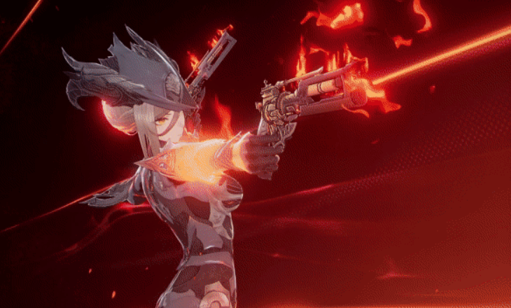琳恩作为火属性输出型角色,具备多种武器精通能力,无论是使用重剑还是双枪都能发挥出强大的战斗效能。她的核心机制之一是通过大招切换武器形态,进入高频率站桩输出状态。即便偏好远程炮台类玩法的玩家,也能很好地驾驭该角色。其战技“致命绽放”是一项功能性较强的技能,能够对前方目标造成单次伤害,并施加特殊印记效果。