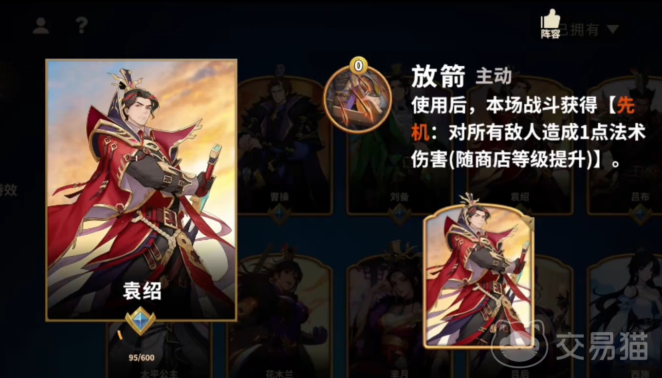 袁绍在战斗开始时可释放统帅技,对敌方全体造成伤害,有效压制对手前排血线,为后续交战创造有利局面。该技能的伤害值随商店等级提升而增长,达到高等级时甚至可直接击杀低血量单位,因此特别适合采用快速升店、抢占节奏的打法策略。