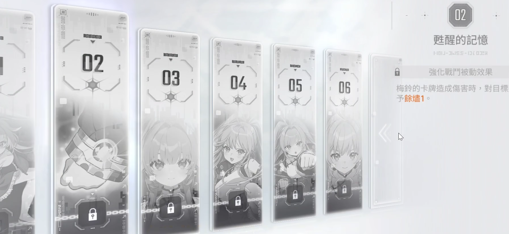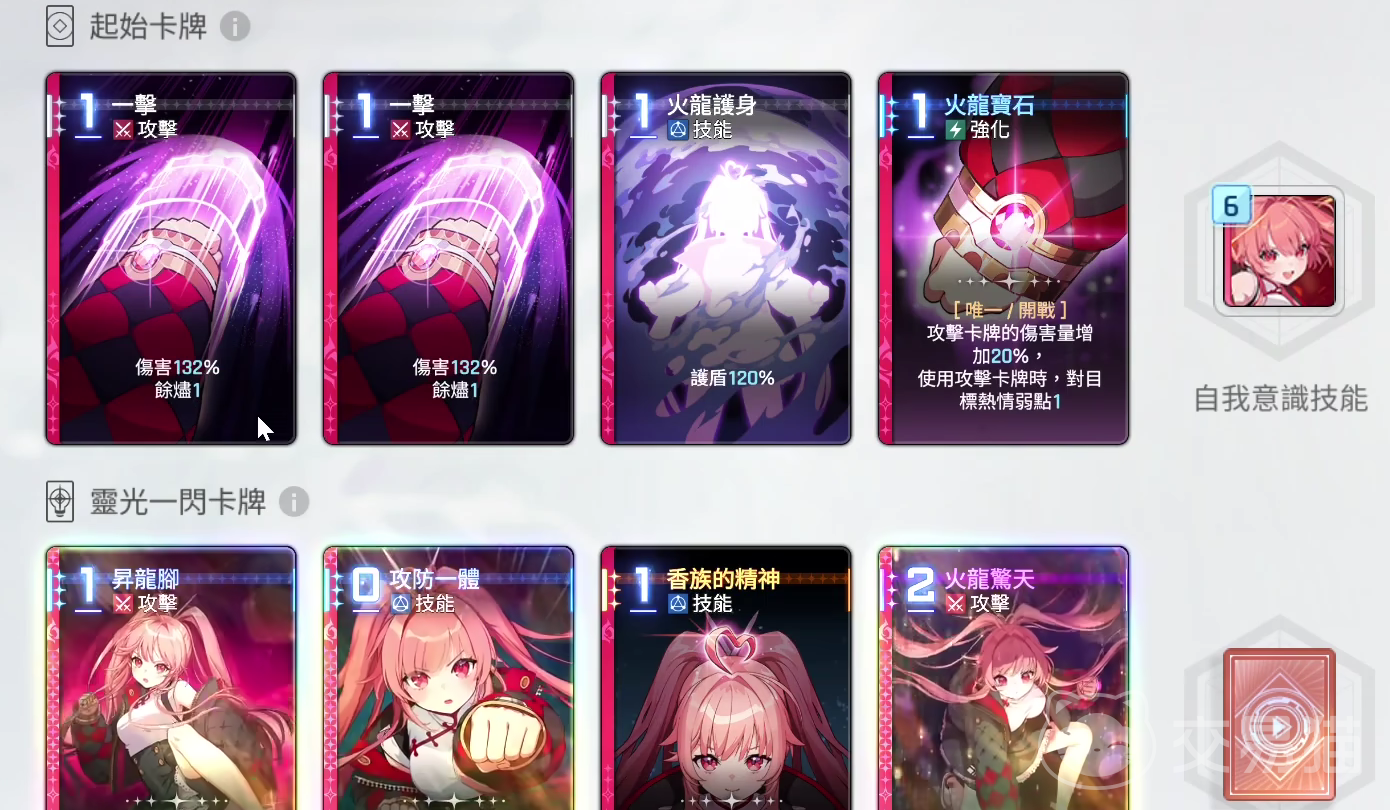 除了命座之外,梅铃的实力还可以通过潜力点系统进一步加强。合理分配潜力点能够有效提升其基础属性与战斗效能。此外,掌握其卡组构成也是发挥其实力的重要环节。梅铃的基础卡组包含一张攻击卡和一张护盾卡,而其核心卡牌则具备攻防兼备的特点,并可在牌库中稳定抽取。根据队伍的实际需求,玩家可以灵活调整卡组配置——若队伍缺乏输出,可替换护盾卡以增强进攻能力;若需要生存保障,则保留防御类卡牌以提升续航。