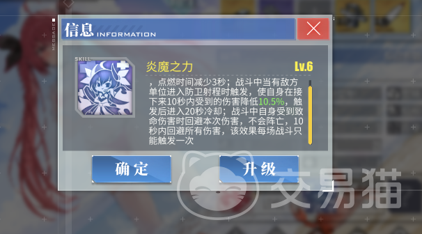 第二个技能“炎魔之力”在装备专武后获得强化,战斗开始时提升10%炮击与命中,降低受到的点燃伤害。当敌方单位进入其防御射程时,自动触发减伤机制并增强防空能力。最核心的是其免死效果:遭遇致命伤害时不会立即阵亡,而是进入10秒无敌状态并恢复20%最大耐久。配合兵装提供的血量低于70%时每5秒回复生命的效果,使她在高压环境下具备极强的生存能力,尤其适用于13图及15图这类对后排威胁极大的高难地图。