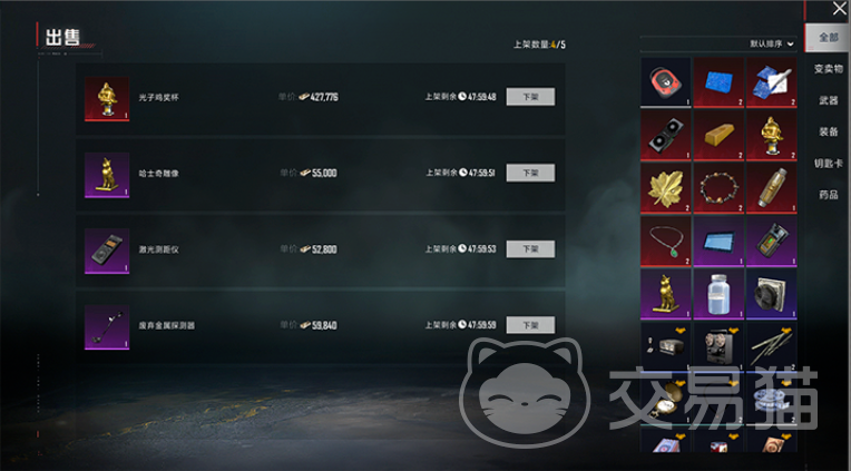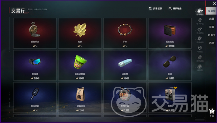 进入地铁大厅后,可在右下角找到交易行入口。进入界面后,可查看当前正在出售的各类物资,涵盖五个主要类别:变卖物、武器、装备、钥匙卡以及药品。玩家既可通过分类筛选查找目标物品,也可使用顶部搜索框快速定位所需内容。需要注意的是,购买的变卖物将会被绑定,无法再次上架交易。