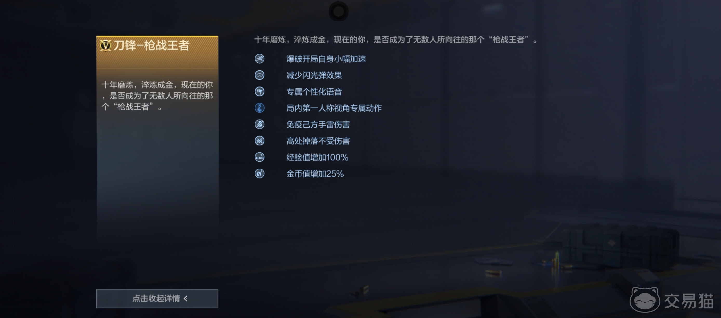 这款武器是为庆祝CF手游十周年特别推出,旨在让玩家在游戏中实现成为“枪战王者”的梦想。在爆破模式开局阶段,它可提供轻微移动加速效果,并降低闪光弹的影响程度。同时配备专属语音包,第一人称视角下拥有独特持枪动作。使用该武器还可显著提升金币与经验获取效率,并具备高空坠落免伤机制,进一步增强生存能力。