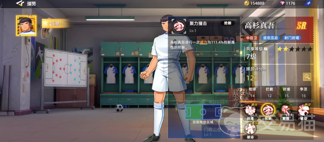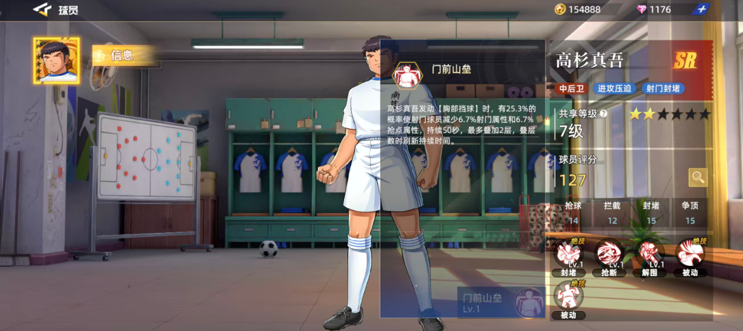 另一项被动技能使高杉真吾的基础封堵属性提升2.1%。在此增益下使用“胸部挡球”,不仅保留原有加成,还可额外削弱对方攻势2.1%。此外,他还拥有名为“门前山垒”的技能——在施展“胸部挡球”时,有25.3%的概率使射门球员的射门与抢点属性各降低6.7%,持续时间为50秒。若该减益效果成功叠加至两层,将持续刷新持续时间,形成长期压制,极大干扰对方关键球员的输出节奏。