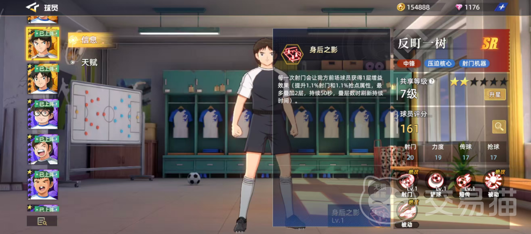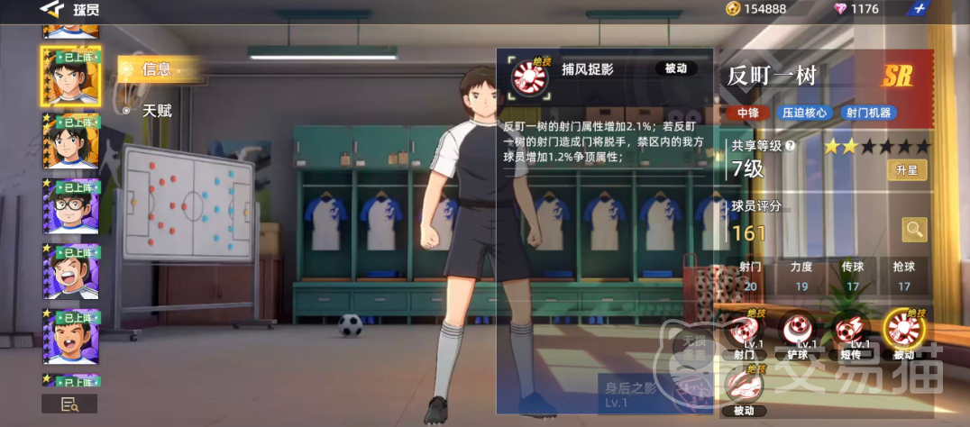 作为SR级中锋,反町一树不仅能在前场形成有效压迫,还能通过高效率射门为队伍创造得分机会,因此也被玩家们称为“射门机器”。其综合评分为161分,远超普通SR球员约120分的平均水平,体现出更强的潜力空间。从六维图来看,他在关键属性上表现突出,其中射门高达20分,力度达到19分,传球与抢球均为17分,这些数据为其进攻输出提供了坚实的基础支持。