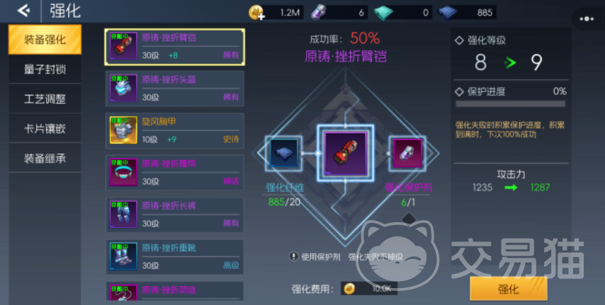 角色战力的提升首先依赖于装备系统的深度培养。基础装备初始属性较为普通,但通过强化系统可大幅提升其性能。强化过程中需消耗强化纤维与高级强化纤维,随着等级提高,装备基础数值也会随之增长。单件装备强化时还需使用记忆芯片作为材料支持。前8级强化为安全阶段,不会出现失败情况;一旦超过8级,后续每次强化都将面临失败风险,可能导致等级下降。