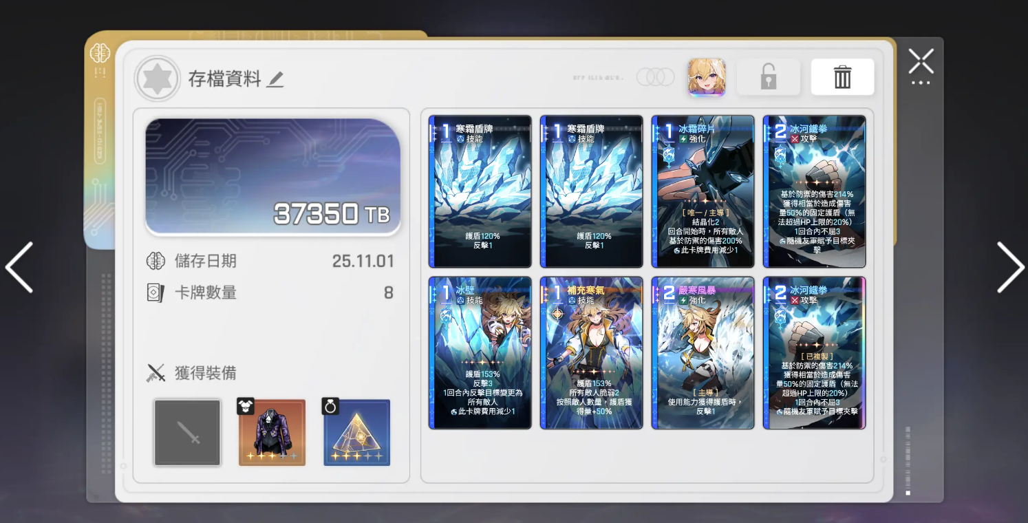 在卡牌配置方面,建议优先补充强化类卡牌,用于提升麦格纳与卡利佩的关键技能效果;攻击类卡牌则需根据敌方阵容特点及己方整体构成进行合理配置;防御类卡牌也不可忽视,可用于进一步巩固全队的抗击打能力。