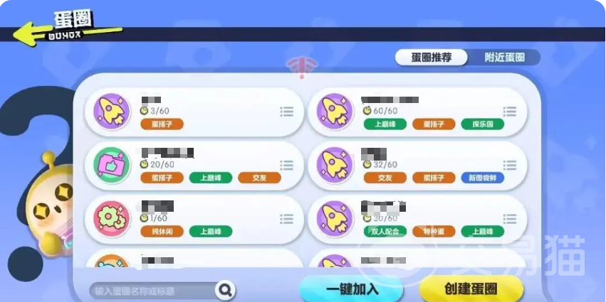 在游戏主界面底部即可找到“蛋圈”入口。进入后,玩家可选择浏览推荐列表加入感兴趣的圈子,也可以自行创建全新的蛋圈。每个蛋圈都支持成员间实时聊天、发布动态,并能提前预约组队游玩时间。此外,还能共享个人收藏的地图资源,提升互动体验。
