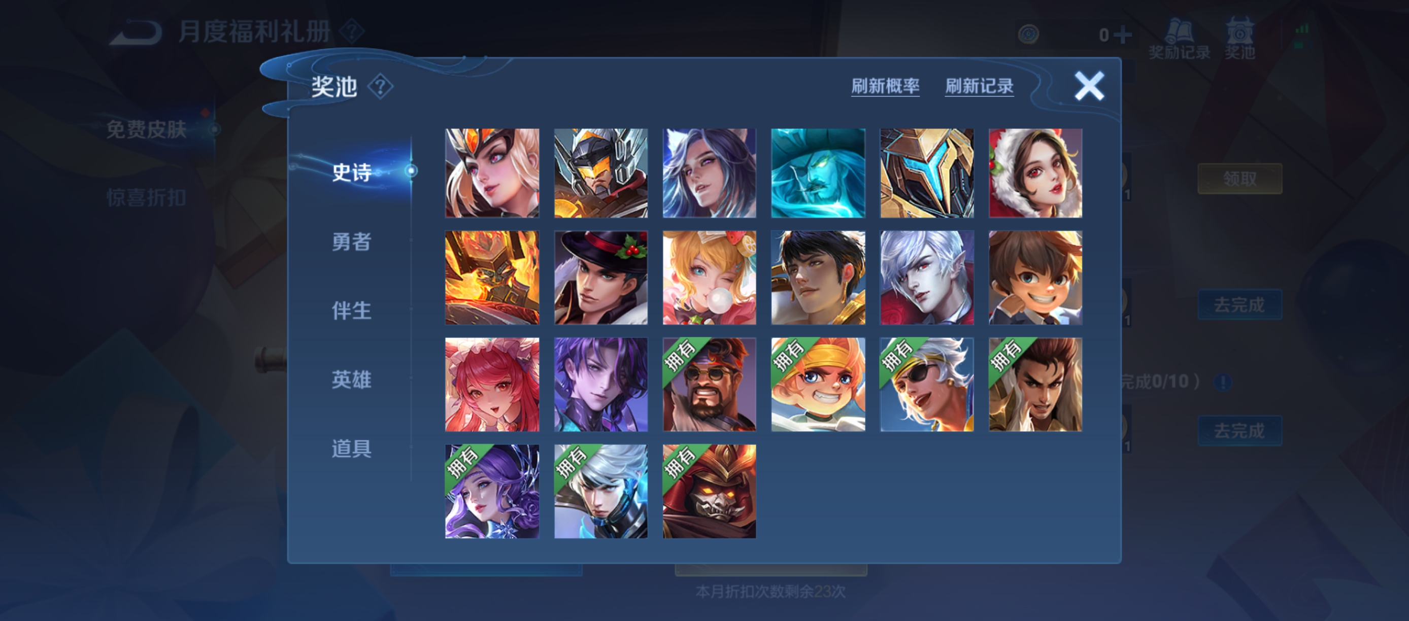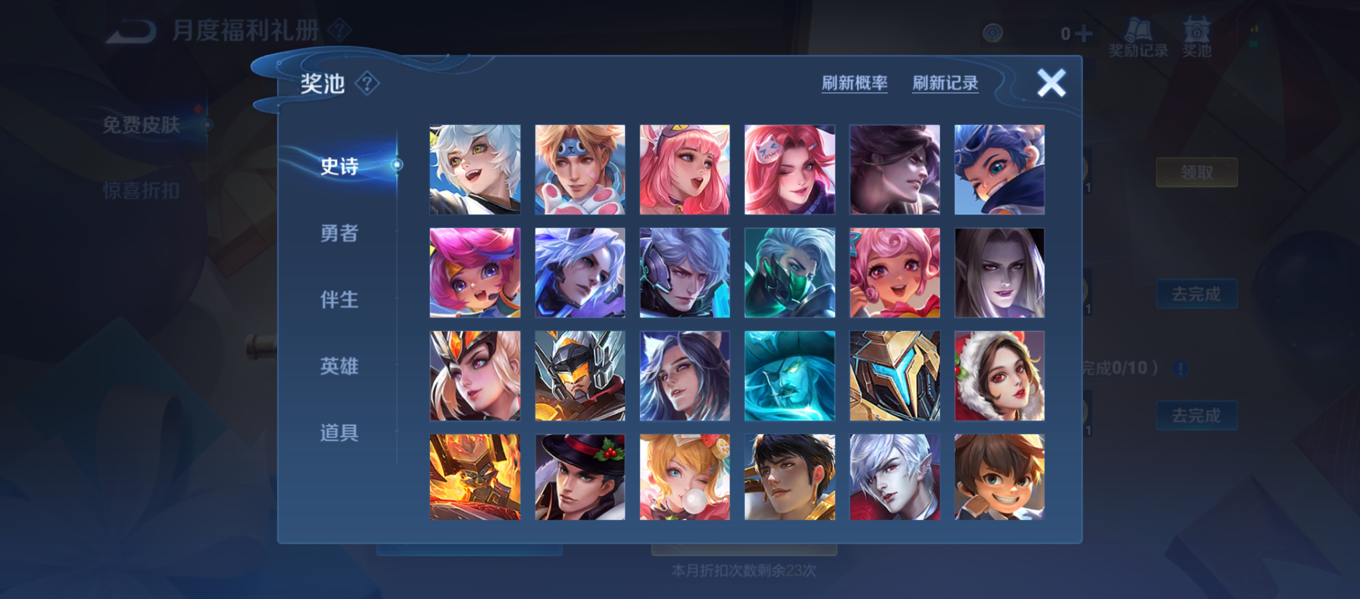 为了提升获取体验,系统设置了保底机制:累计完成120次刷新后,必定可获得一款尚未拥有的史诗级皮肤。对于重复刷出的勇者级别皮肤,系统将自动转换为4张积分夺宝抵用券,可用于后续抽奖,积攒后甚至有机会兑换荣耀水晶。需要注意的是,虽然刷新次数可跨月继承,但已获得的刷新币必须在当月最后一天前使用完毕,否则将在月底清零。另外,10月份的相关活动已于10月31日结束,其对应货币无法延续至下个月。