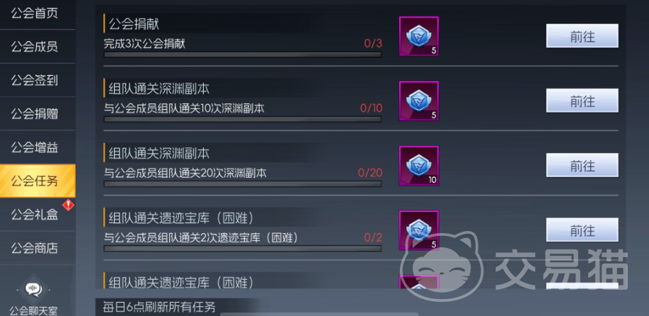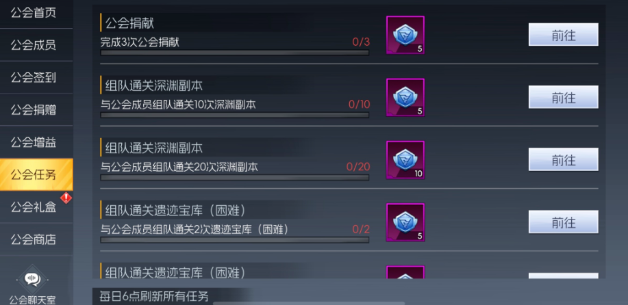累计完成一定次数的捐赠后,还可领取阶段性累积奖励,这也是获取贡献币的重要途径之一。资源不足的成员可发布求助请求,由其他成员协助完成捐赠任务。需要注意的是,接受帮助的求助者仅计入次数,无法获得单次捐赠对应的奖励,而提供帮助的成员则能获得部分奖励回馈。最后是公会任务系统,每日可在指定时间领取一项任务并完成以获取奖励,任务会在每日早上6点刷新,每位成员每天只能选择一个任务执行。