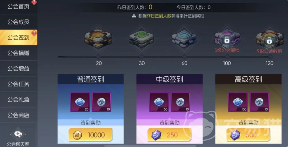 其次是公会签到功能,玩家可根据自身资源情况选择消耗金币或龙牙币进行签到,不同档位对应不同奖励内容。每日仅可完成一次签到操作,请合理选择消耗类型以最大化收益。此外是公会捐赠系统,每位成员每天可通过捐献道具来获取回馈奖励。