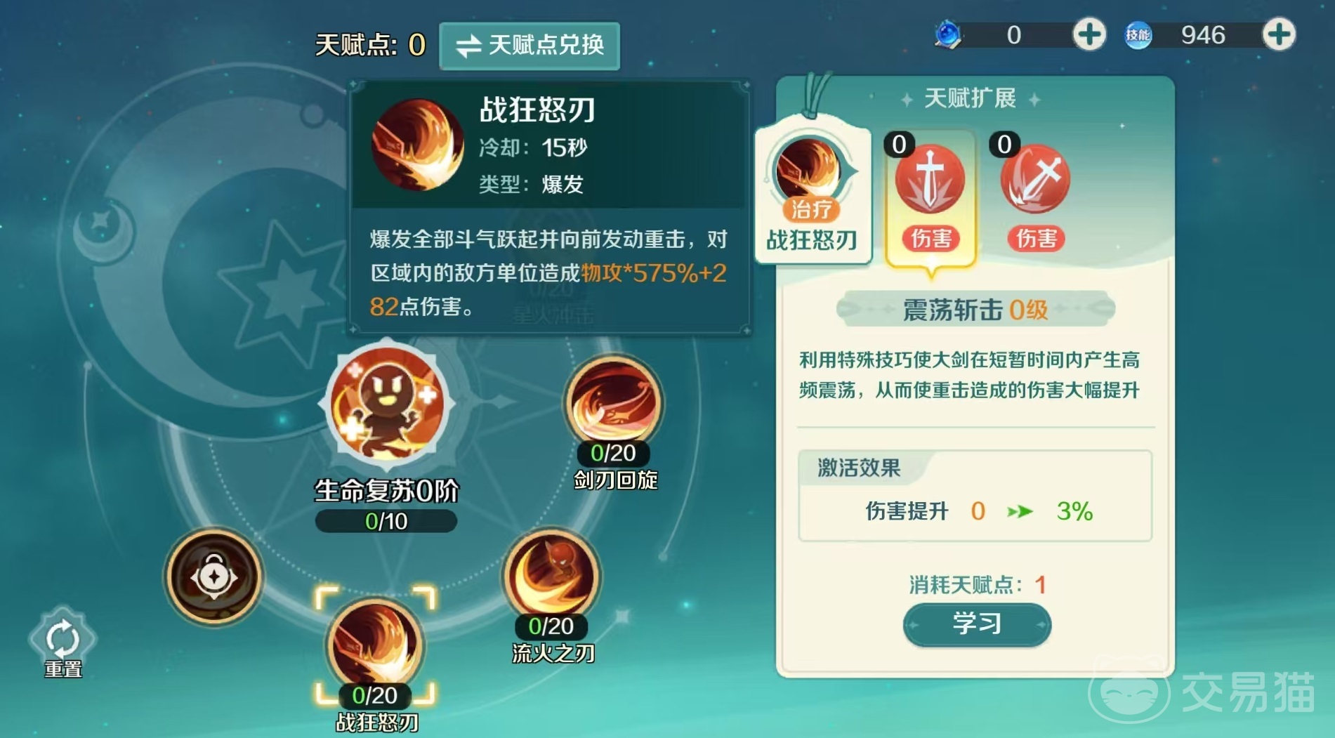 狂刃的核心技能包含星火冲击、剑刃回旋、流火之刃、战狂怒刃以及盖亚之盾,涵盖了输出、控制、生存和增益等多种功能。每个技能均设有两个可选的天赋分支,玩家需结合副本或PVP场景进行针对性配置。在面对副本挑战时,推荐采用以持续输出与生存能力为核心的加点思路。星火冲击建议优先选择“星火能量”,该效果可在施法时概率缩短冷却时间,提升技能释放频率。剑刃回旋作为主要清怪手段,应优先激活“破锋剑舞”,显著增强技能本身的伤害表现,提高刷图效率。