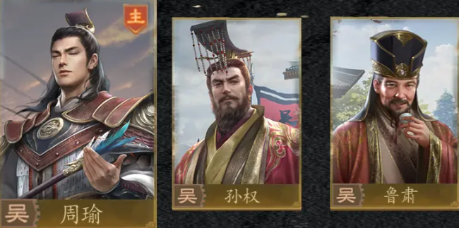 该阵容的核心人物为周瑜,其技能“火乘风势”可在火攻状态下大幅提升伤害输出,是整个队伍的主C担当。若缺少周瑜,则无法构建此体系。其余两名关键成员推荐使用孙权与鲁肃,三人组合可形成有效联动,最大化火焰战术的实战效果。