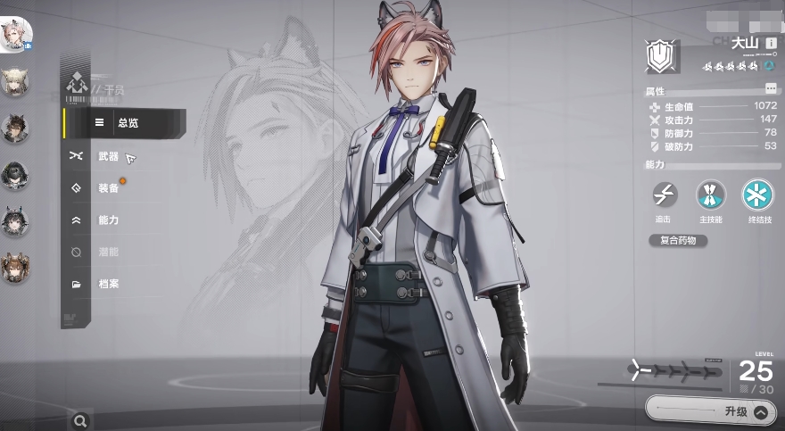 首位介绍的角色是大山,作为一名兼具治疗与输出辅助能力的医疗干员,他在战场上的定位非常灵活。除了常规的回复能力外,他的技能还能提供显著的突进效果,并对敌人施加破人状态,从而提升全队的输出效率。其大招可为全体友方单位恢复生命值,在高强度战斗中能有效维持队伍续航,作为团队支援核心具有极高的战略意义。