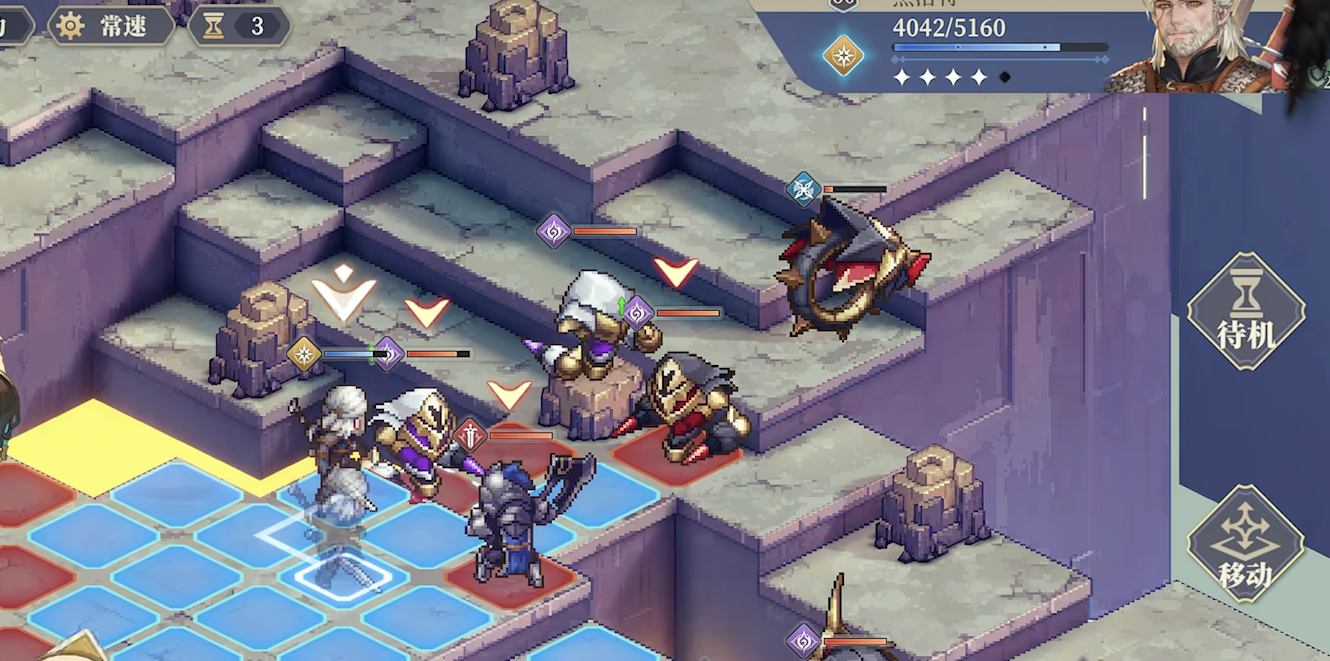 杰洛特的专属天赋使其魔攻值等同于物攻值,同时提升自身的暴击率与移动力。战斗开始时,他会自动获得一层物理护盾,当护盾被打破时可击退攻击者。此外,他还掌握特殊技能“猎魔人的魔药”,可随时发动,用于增强物攻、提高暴击、回复能量或生命值。最多可叠加两种不同类型的魔药效果,且每次使用魔药后,自身免伤能力也会随之上升。