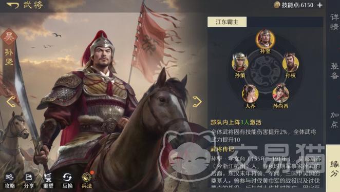 在战法配置方面,大乔应优先选择具备治疗与减伤效果的技能组合,推荐携带仁治武功与天香,若暂时无法获取,也可用其他恢复类或防御型战法替代。兵法建议选择励军系中的以逸待劳、奋鼓、乐善、固军等,进一步强化团队持久作战能力。孙坚定位为功能性前排,主要作用是施加威压状态实现控制干扰,因此生存能力需有一定保障,战法推荐伺机而动+天符猛击,兵法选择刚毅系以增强抗打击能力。