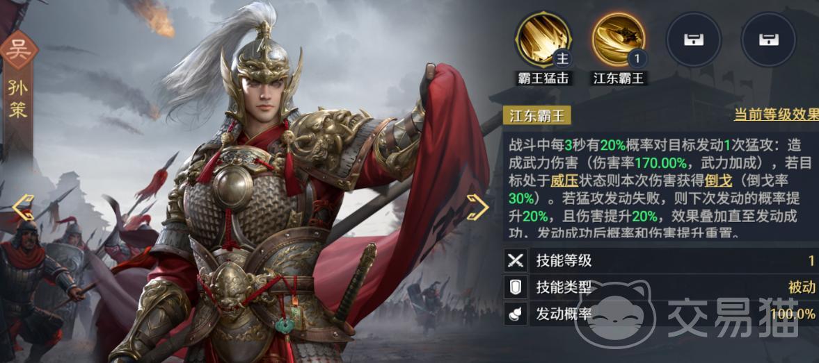 副将位置由孙坚与孙策共同承担,分工明确:孙坚负责前排承伤并提供控制效果,而孙策则作为主力输出核心(主C)存在。孙策自身技能具备高额直接伤害与后续DOT伤害,配合良好的技能循环机制,在不依赖高阶装备支持的前提下也能打出稳定输出,非常适合资源有限的发育阶段使用。