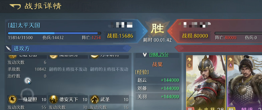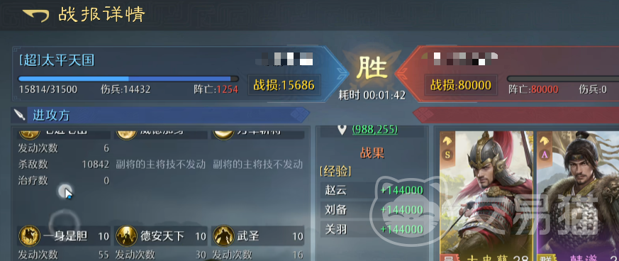 刘备另一项关键能力是在普攻时恢复兵力,保障队伍续航;至于第三位武将,建议选择功能性较强的辅助型角色,如关羽便是不错选择。合理配置技能后,可为全队提供80点武力加成,并附加一次兵力回复效果,进一步强化整体输出与生存能力;