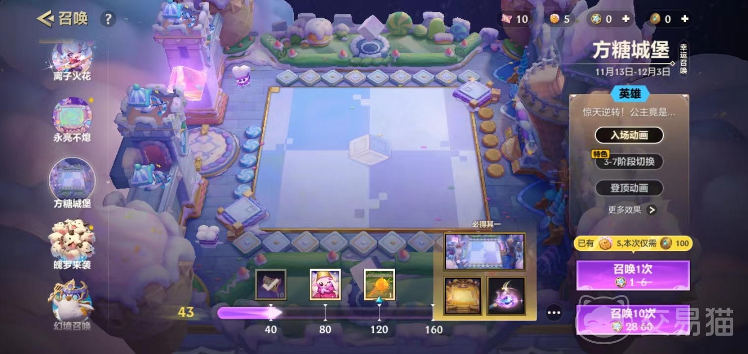 作为英雄级棋盘,方糖城堡需通过幸运召唤获取,初始概率为1%。根据实际测试数据,大多数玩家在累计抽取300次左右可实现保底获得,整体掉率相对合理。本次召唤池同期上线的还有焦糖厨房主题,适合偏好温馨风格的用户选择。但从稀缺性和独特性角度考虑,建议优先锁定方糖城堡,因其阶段切换机制具有不可复刻性。此外,建议玩家提前储备足够数量的召唤券,并采用10连抽方式进行集中抽取,有助于提升获取效率。