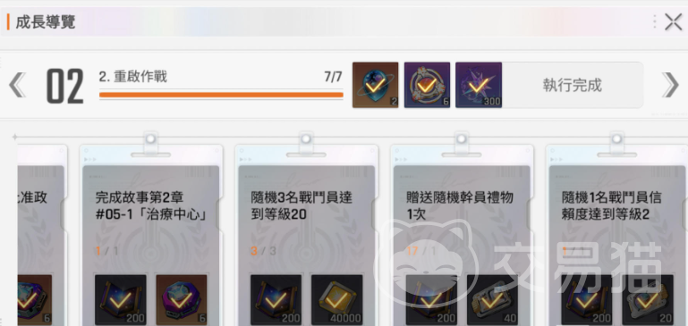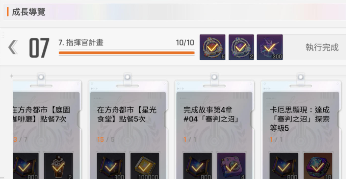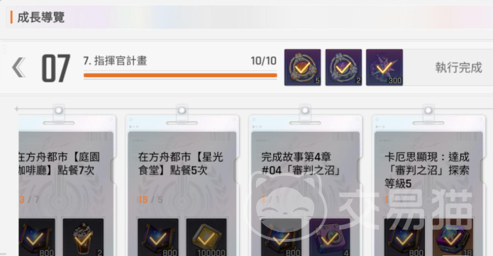 第七阶段围绕“交易计划”展开,侧重于长期发展规划与资源统筹配置。部分任务要求特定影伴升至50级,信赖度提升至10级,完成这些目标有助于持续获取稀缺资源。此阶段不建议急于求成,许多日常或周期性活动需多日才能完成。任务类型涵盖角色训练、典藏互动及高阶模拟演练,挑战难度显著增加。因此,在多个维度协同推进任务时,需保持耐心,制定合理的执行节奏。