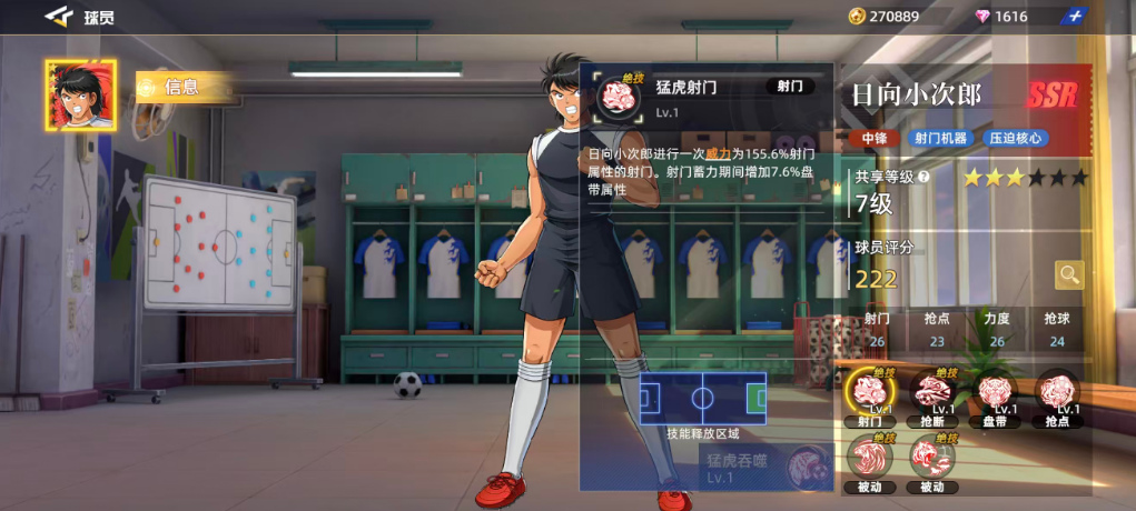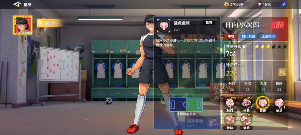 对于偏好中锋位置的玩家来说,日向小次郎是一个非常值得培养的SSR级角色。在《队长小翼:王牌对决》这款游戏中,日向小次郎凭借其出色的球员评分脱颖而出,总评高达222分,远超多数同类型中锋,因此具备极高的推荐价值。