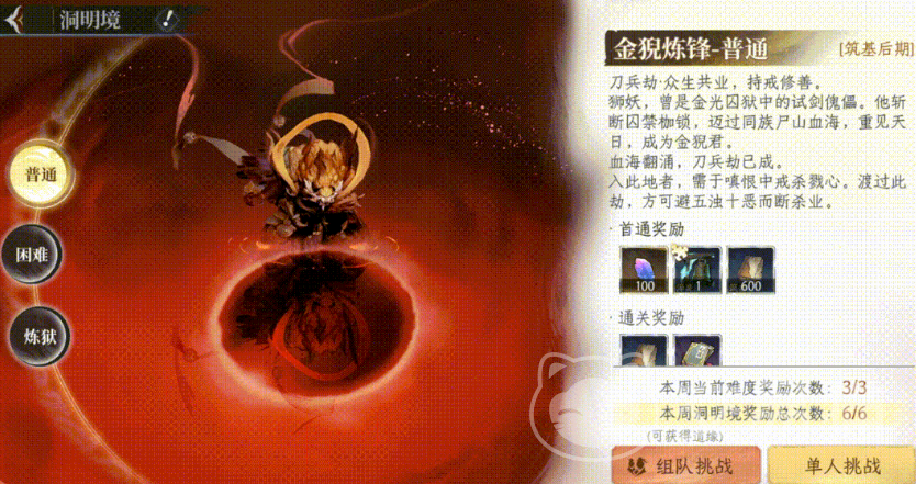 另一重要玩法——洞明境,则作为每周例行挑战内容存在,支持单人闯关或组队协作模式。副本共设普通、困难与炼狱三种难度层级,通关后可获取高阶心法秘籍及角色成长所需的关键资源。当前版本中,洞明境设有三位主题Boss:狮妖、青木阵盘与涂山青青,每位Boss均拥有独特的战斗机制。