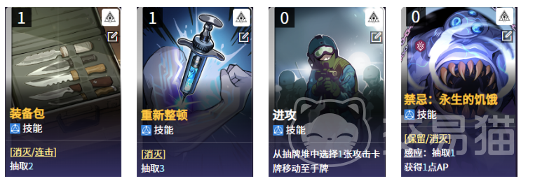 对于辅助类角色而言,优先考虑获取“装备包”、“重新整顿”、“进攻”以及“禁忌永生的饥饿”。其中,“装备包”属于通用性强且收益稳定的选项,能够使队友在使用卡牌后触发额外效果,实用性极高。“重新整顿”与“禁忌永生的饥饿”属于稀有度较高的卡牌,一旦刷出建议立即拾取。“进攻”则可根据当前卡组需求灵活选择,主要用于检索攻击类卡牌,增强团队输出连贯性。