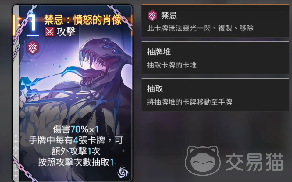 “攻击性突变”能提升抽卡效率,使每次使用攻击卡时额外抽取一张,有效加快节奏。“禁忌愤怒的肖像”兼具伤害与过牌功能,是资源循环的关键卡之一。“禁忌暴力的欢愉”则提供全局费用减免效果,该减费为永久性机制,有助于快速达成0费循环,大幅提升卡组流畅度。