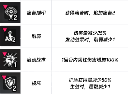 痛苦刻印:当角色处于“痛苦”状态时,自动追加2层“痛苦”效果。