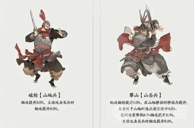 主动技一允许牵招位移至指定空地位置,同时对落点周围的敌军造成其物攻60%的伤害,并施加“地劣”状态;若当前兵种为山岳兵,则自身也会获得“地劣”增益,以换取更强的战场适应性。该技能升至2级后,若目标已存在“撕裂”状态,则额外追加“牵制”控制效果。