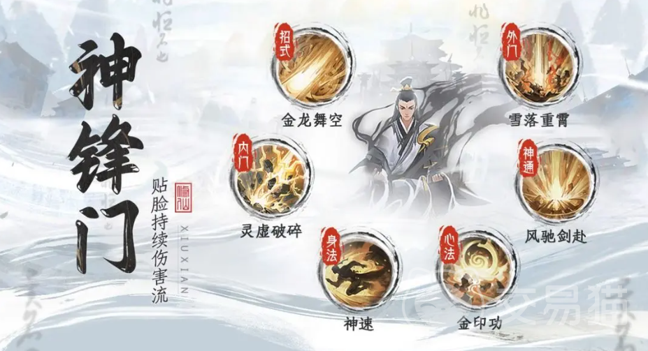 神锋门主修金系功法,擅长近身爆发作战,是典型的高机动性近战职业。其核心技能“灵虚破碎”配合“神速双剑”,可实现高速突进并紧贴目标输出。同时,“金龙舞空”与“雪落重霄”形成连招组合,能够持续施加高额伤害。该门派在战斗中以锋锐之势压制对手,关键时刻释放终结技,具备一击制敌的强大能力。